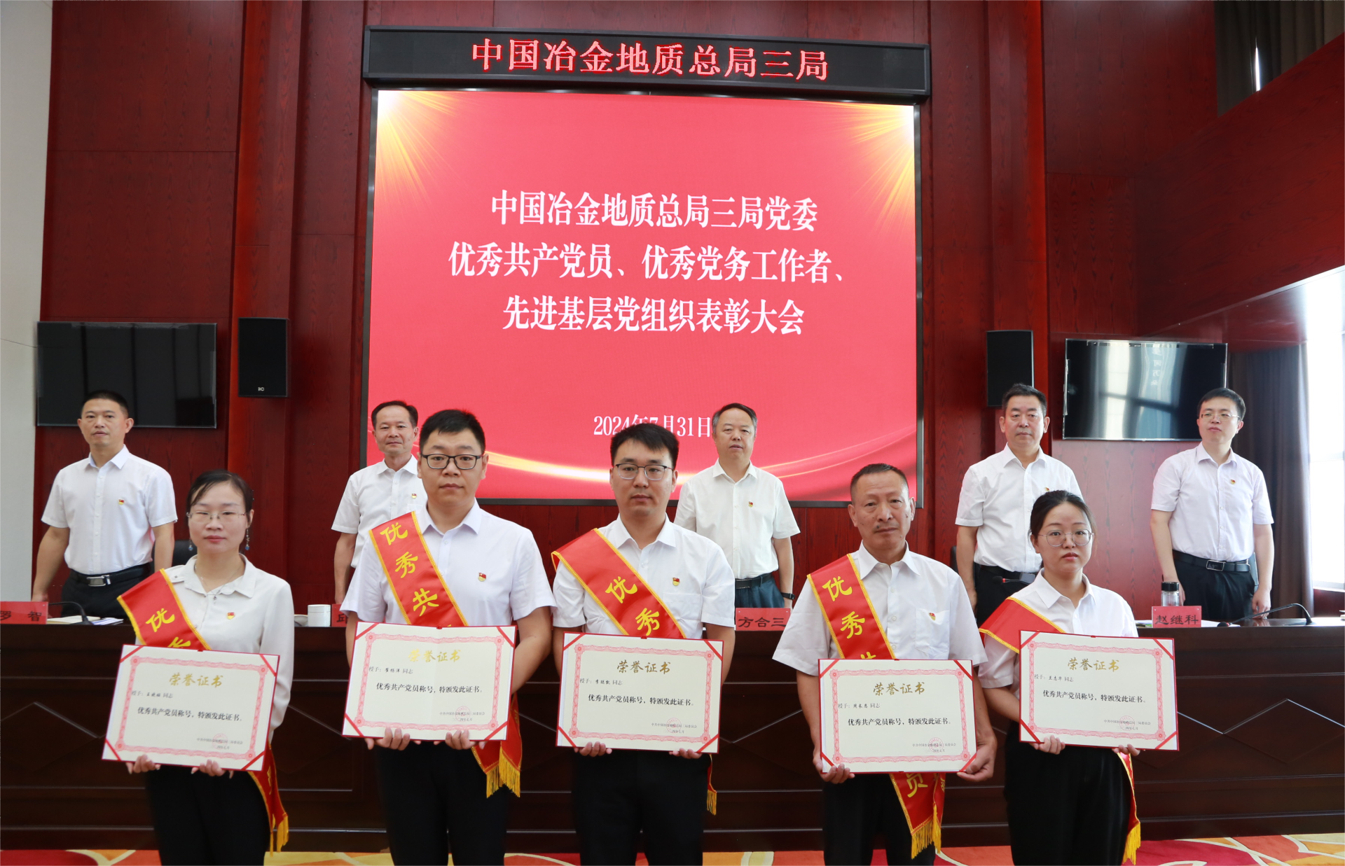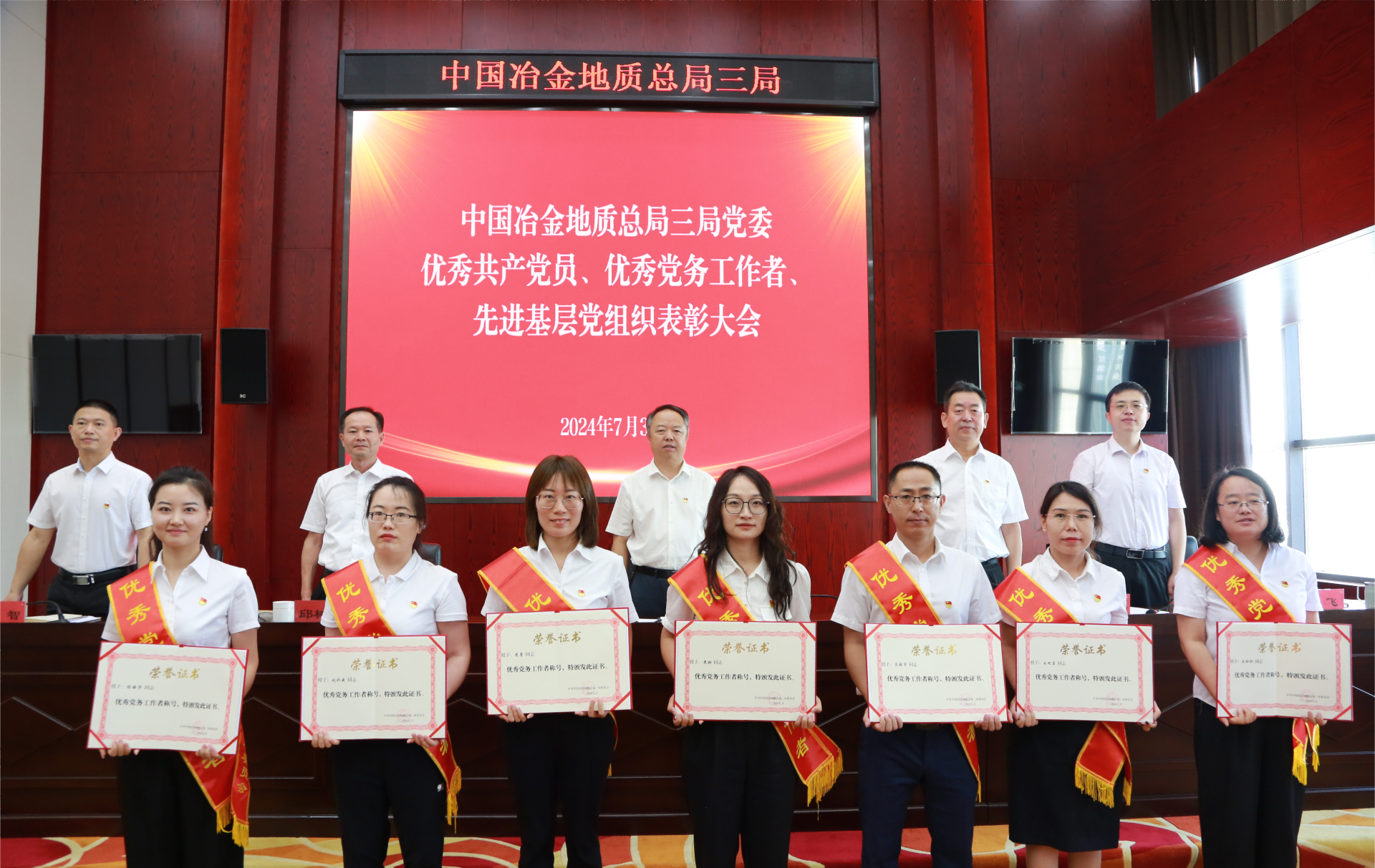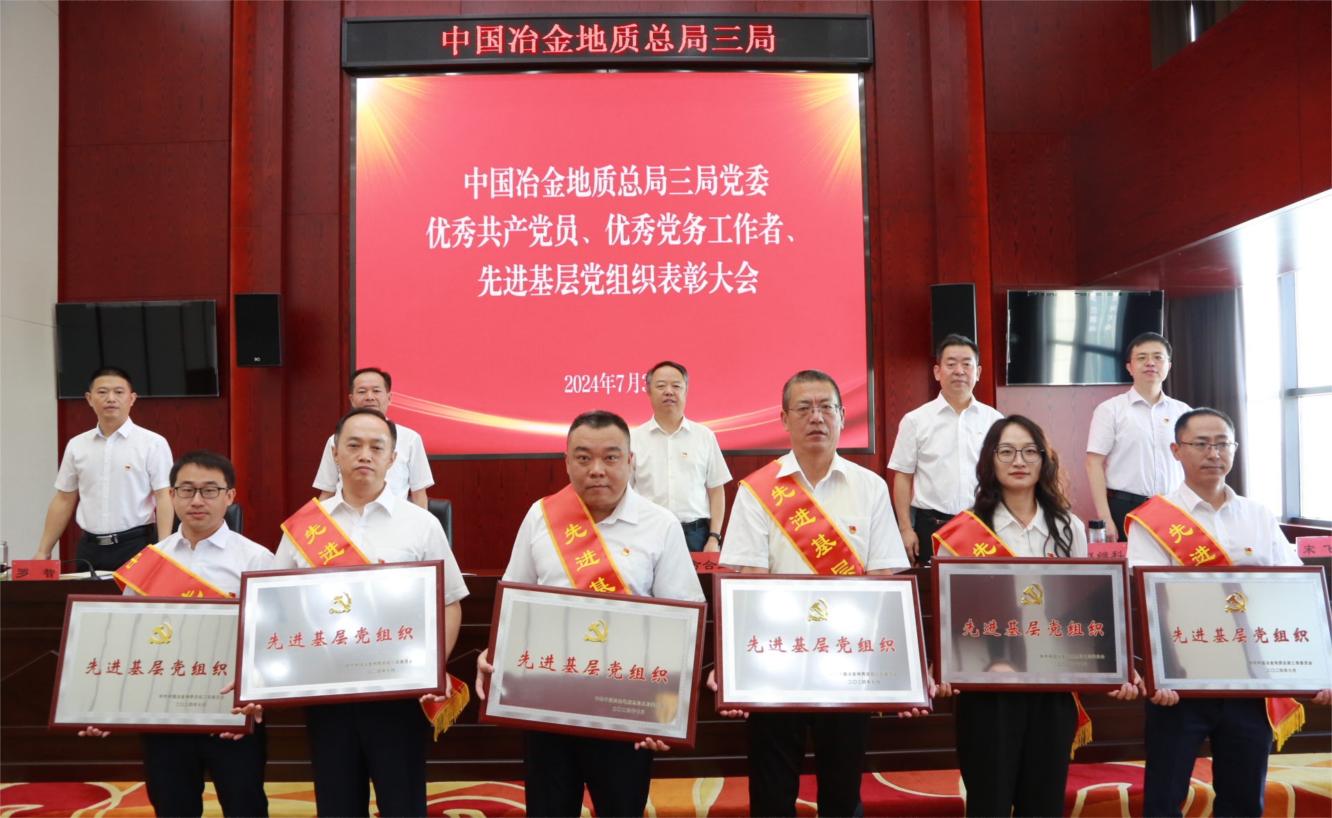 表彰会上,局党委授予卫浩等19名共产党员“中国冶金地质总局三局优秀共产党员”称号,授予谢丽莎等7名党务工作者“中国冶金地质总局三局优秀党务工作者”称号,授予岩土公司地环分公司党支部等6个基层党组织“中国冶金地质总局三局先进基层党组织”称号。局领导为受到表彰的先进集体和优秀个人颁发了奖牌和证书。